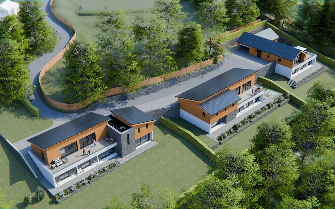 An Exclusive Collection of Three Bespoke, Architect Designed Detached Homes, privately positioned in sought-after Broomy Hill, with panoramic views across the Waterworks Museum and Model Railway, on the outskirts of Hereford city.